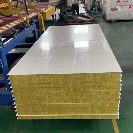 Wir bieten Standard 24-Zoll-, 4x8- und maßgeschneiderte Steinwolle-Sandwichpaneele für schnelle, präzise Installationen an.